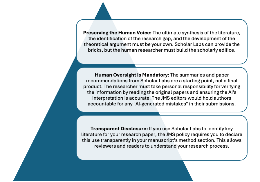 By following the principles of transparency, critical oversight, and ultimate human responsibility—as outlined in the JMS policy—researchers can leverage innovations like Google Scholar Labs to enhance their work’s efficiency and depth, while safeguarding the integrity and intellectual contribution that define true scholarly achievement.